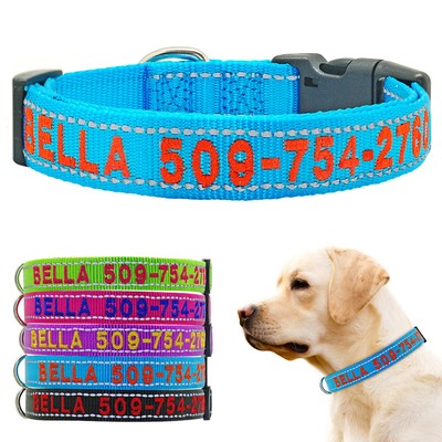 Embroidered Dog Collar Personalized Reflective Dog Id Name Phone Blue Pink Green Ebay