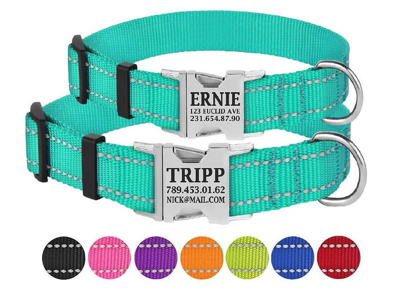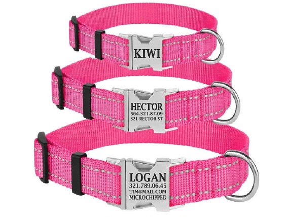 Gotags personalized reflective dog collars custom engraved with name and phone number adjustable dog collar with quick release buckle 3 sizes for puppy and dogs small medium and large 42 out of 5 stars 434. Gotags personalized reflective dog collars custom engraved with name and phone number adjustable dog collar with quick release buckle 3 sizes for puppy and dogs small medium and large 42 out of 5 stars 434.