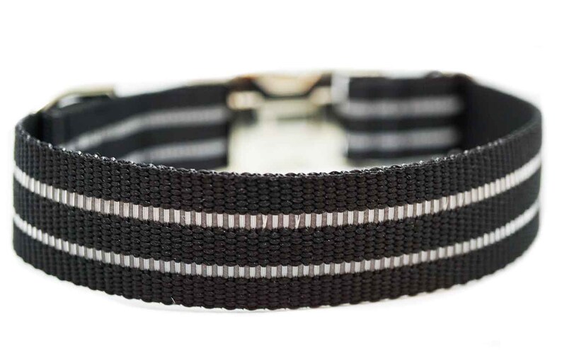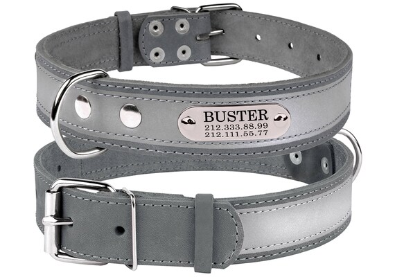 Reflective dog collars for your cool dog mimi green reflective dog collars ensure that your dog will be seen in the dark keeping them safe at night. Our reflective ribbon looks grey in daylight but gives a brilliant reflective notice to approaching vehicles that you and your pup are walking in the road ahead. Engraved reflective waterproof soft grip dog collars these lightweight personalized dog collars are perfect for every occasion from hunting in the field to a leisurely evening walk.