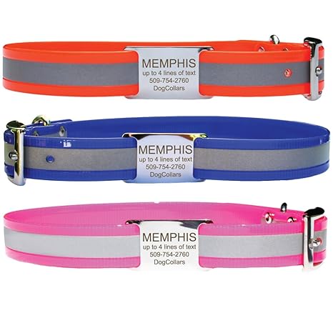 Reflective Waterproof Dog Collar With Personalized Slide On Nameplate