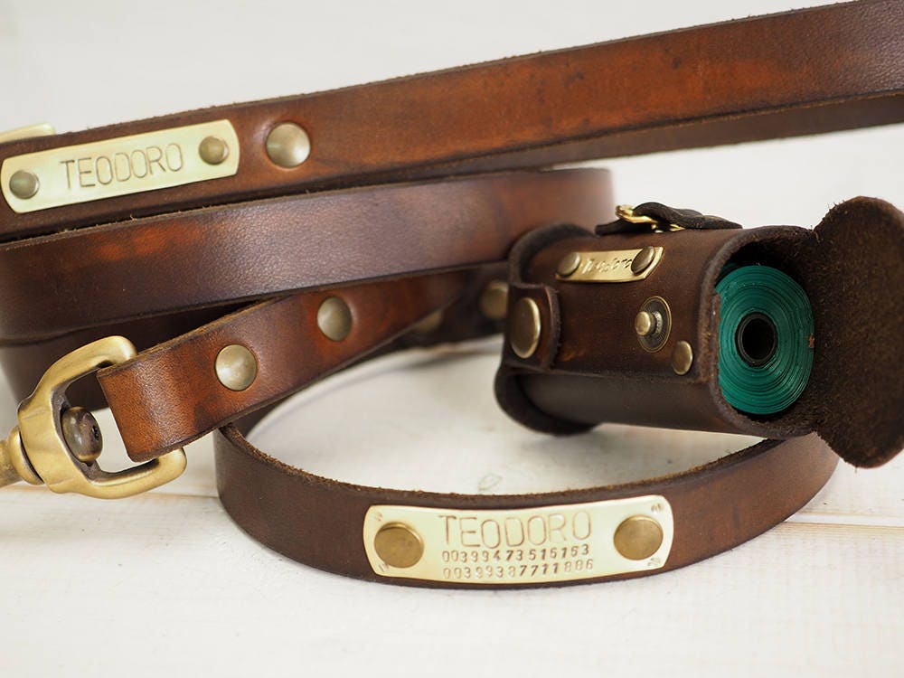 Collar Leash Set Leather Poop Bag Holder Leather Collar Collar Leather Dog Collar Personalized Leather Collar Collar Leather Leash