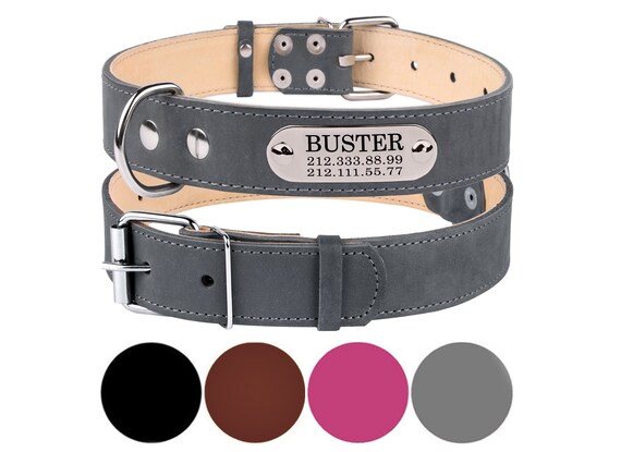 Custom Leather Dog Collar Engraved Personalized Nameplate