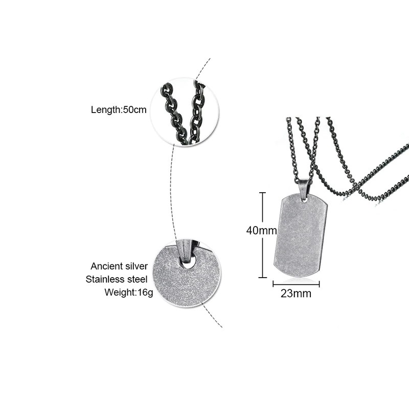Fashion Man Military Card Stainless Steel Dog Tags Pendant Necklace For Necklaces Vintage Antique Filling Pieces Personality 70cm Long Beads
