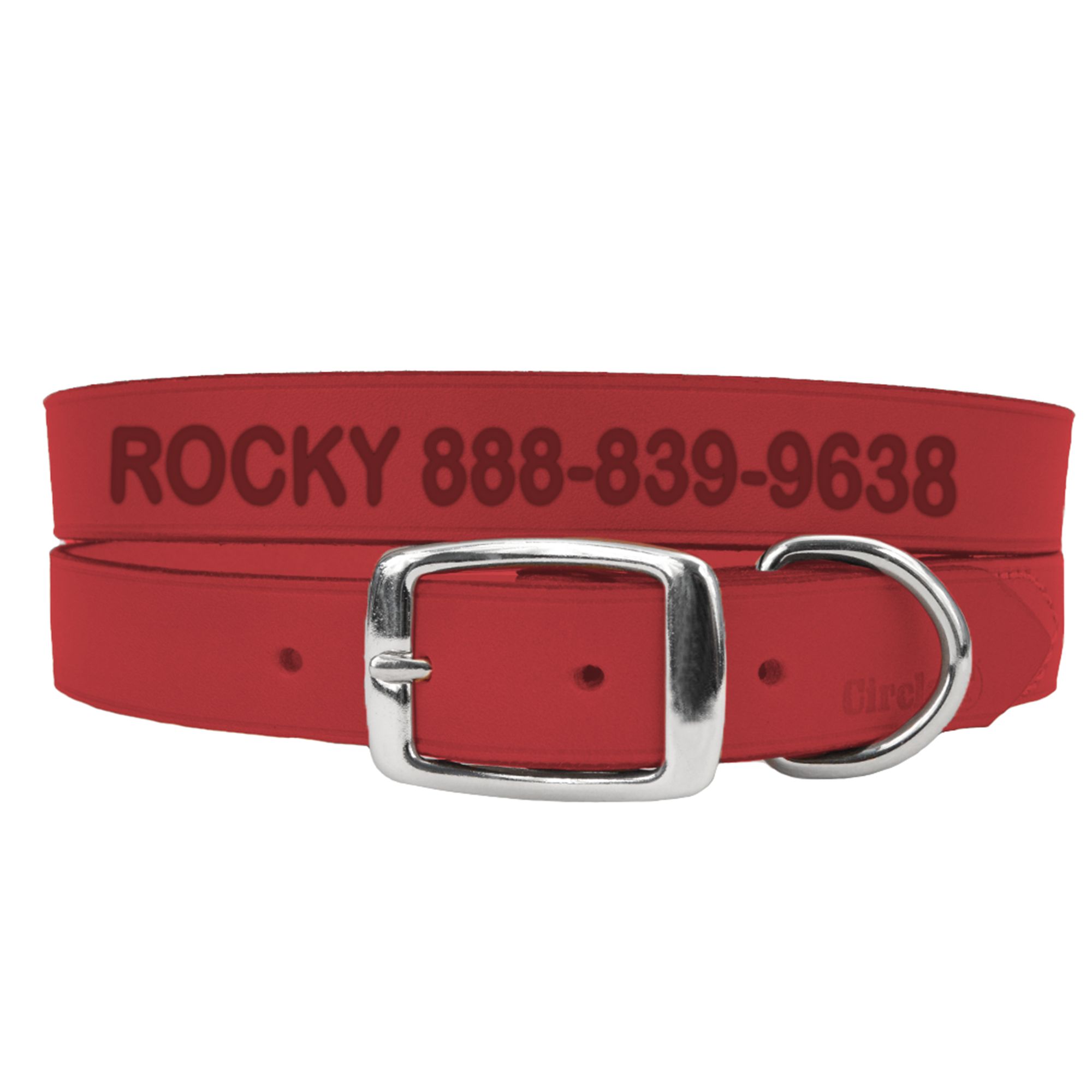 Did you scroll all this way to get facts about leather dog collars. Gotags personalized dog collars custom embroidered pet id available in soft leather with rounded edges for comfort fit or woven nylon with snap closure buckle great alternative to pet tags 47 out of 5 stars 927 2295 22. Mendota brown leather dog collar with personalized nameplate the mendota leather dog collar with personalized nameplate is a rich brown leather dog collar that will make any dog look like a pooch who lives in the lap of luxury.