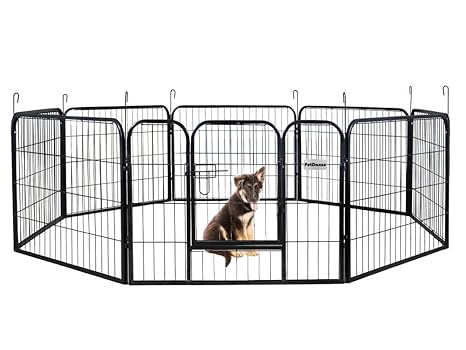 Petdanze Dog Pen Metal Fence Gate Portable Outdoor Heavy Duty Outside Pet Large Playpen Exercise Rv Play Yard Indoor Puppy Kennel Cage Crate