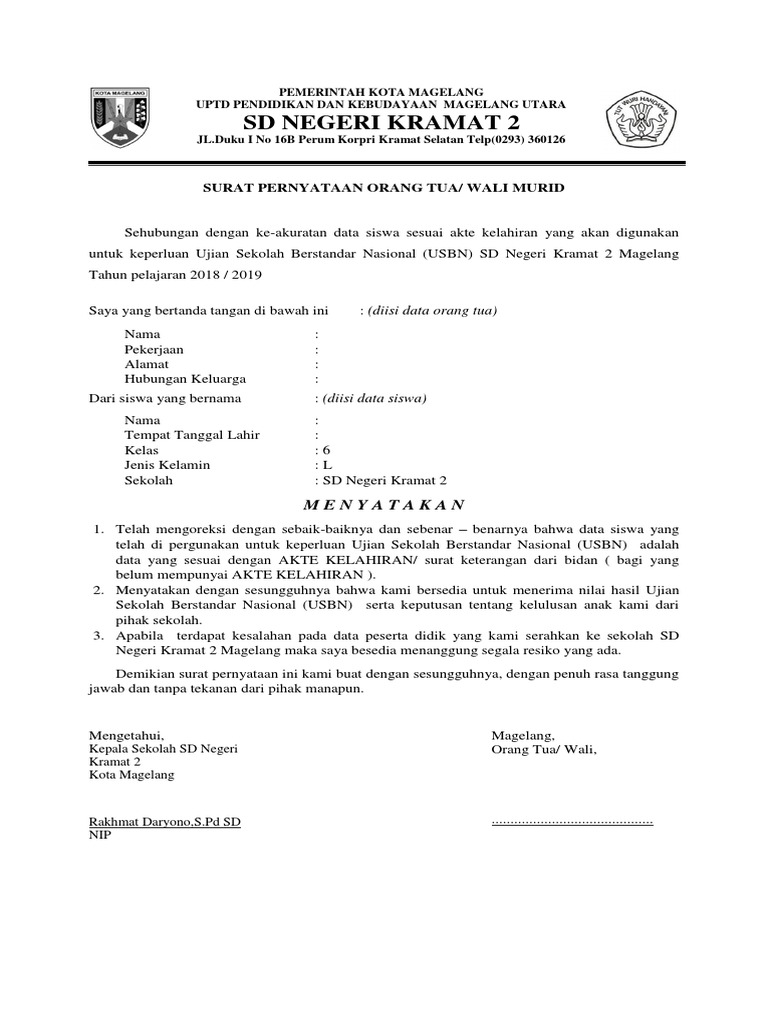 1 from Dalam berbagai kasus, penggunaan surat pernyataan orang tua mungkin akan berbeda. Ada banyak sekali ragam contoh surat pernyataan yang bisa anda jadikan referensi di sini. Home » surat pernyataan » contoh surat pernyataan orang tua yang baik. Surat pernyataan ini merupakan persyaratan penting agar sekolah bisa bertindak untuk dan atas nama orang tua siswa tersebut di atas, pada sekolah. Surat pernyataan dapat bersifat resmi atau pribadi. Bagaimana contoh surat pernyataan orang tua/wali siswa untuk sekolah dalam pengurusan beasiswa atau karena masalah tertentu bagaimana contoh redaksi/isi teks/bentuk surat pernyataan orang tua (ortu) 2021 terbaru ini? Hal ini karena mengingat bahwa orang yang awam sekalipun mayoritas pernah membuatnya untuk keperluan tertentu. Surat persetujuan orang tua/wali siswa untuk pembelajaran tatap muka di sekolah di masa pandemi covid19 ini merupakan salah satu prasayarat yang harus dimiliki oleh sekolah/madrasah agar dapat menyelenggarakan pembelajaran tatap muka di masa new normal masa pandemi covid19.